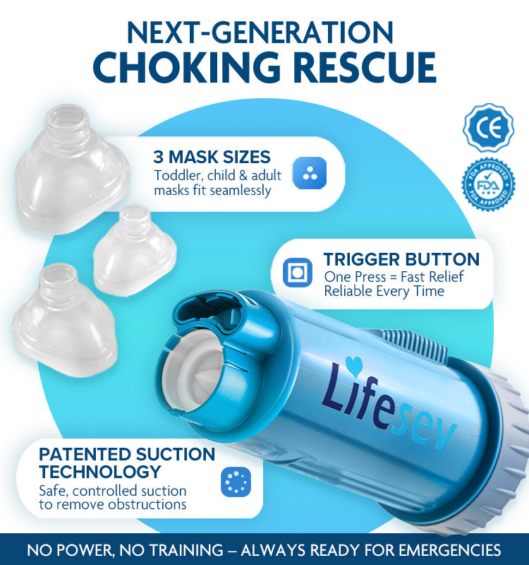 Choking can happen without warning, and in those critical moments, having LIFESEV™ nearby can save lives. As one of the leading causes of accidental death in children under 14 — and a serious risk for older adults — choking requires immediate action. With LIFESEV™, families can be prepared, confident, and protected.